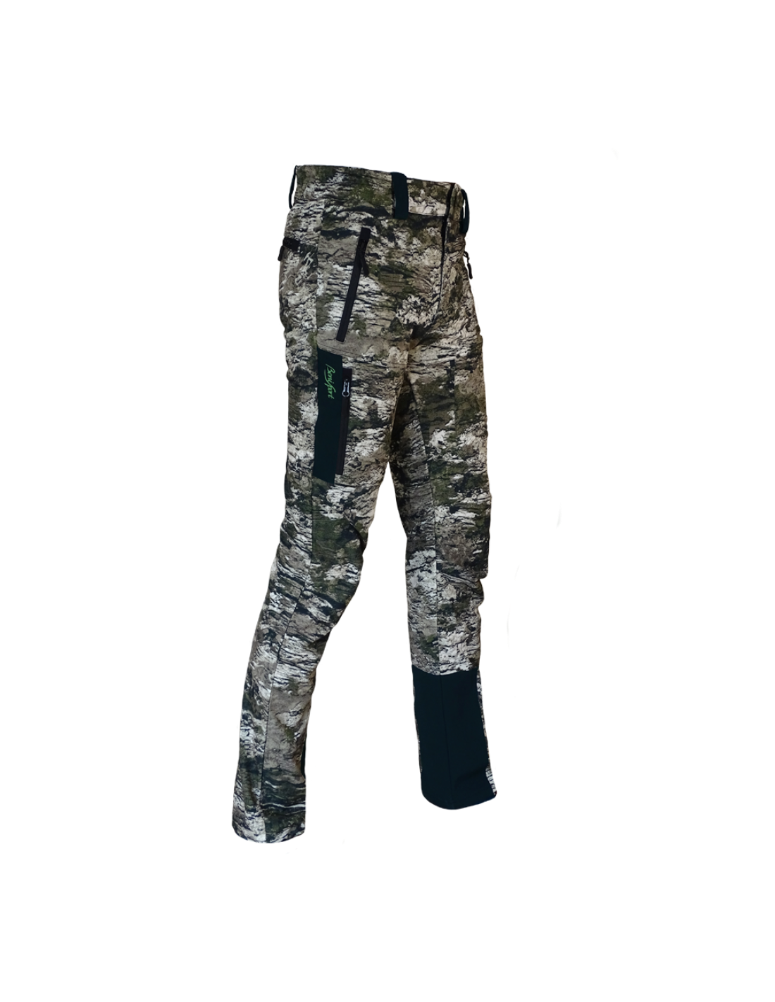 - Tejido combinación colores camuflaje y piezas de soft shell en color verde.